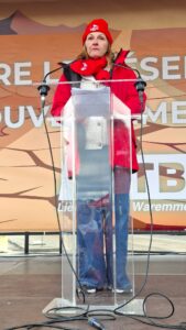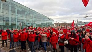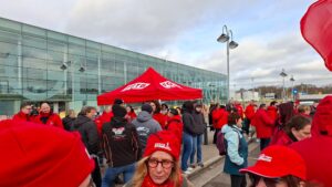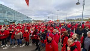 Bierset n’a donc pas été choisi par hasard : trois employé·e·s, dont une déléguée FGTB, ont été licenciés par la direction de l’aéroport fin janvier. « Elle a été licenciée parce qu’elle faisait son travail de déléguée. Il fallait marquer notre solidarité envers elle et dénoncer une attitude patronale immonde. Avec ce gouvernement Arizona, les patrons obtiennent tout ce qu’ils veulent ! », a dénoncé Minervina Bayon, notre Secrétaire régionale FGTB Liège-Huy-Waremme, dans son discours prononcé lors de notre rassemblement syndical. Elle a également rappelé l’absolue nécessité de poursuivre nos actions.