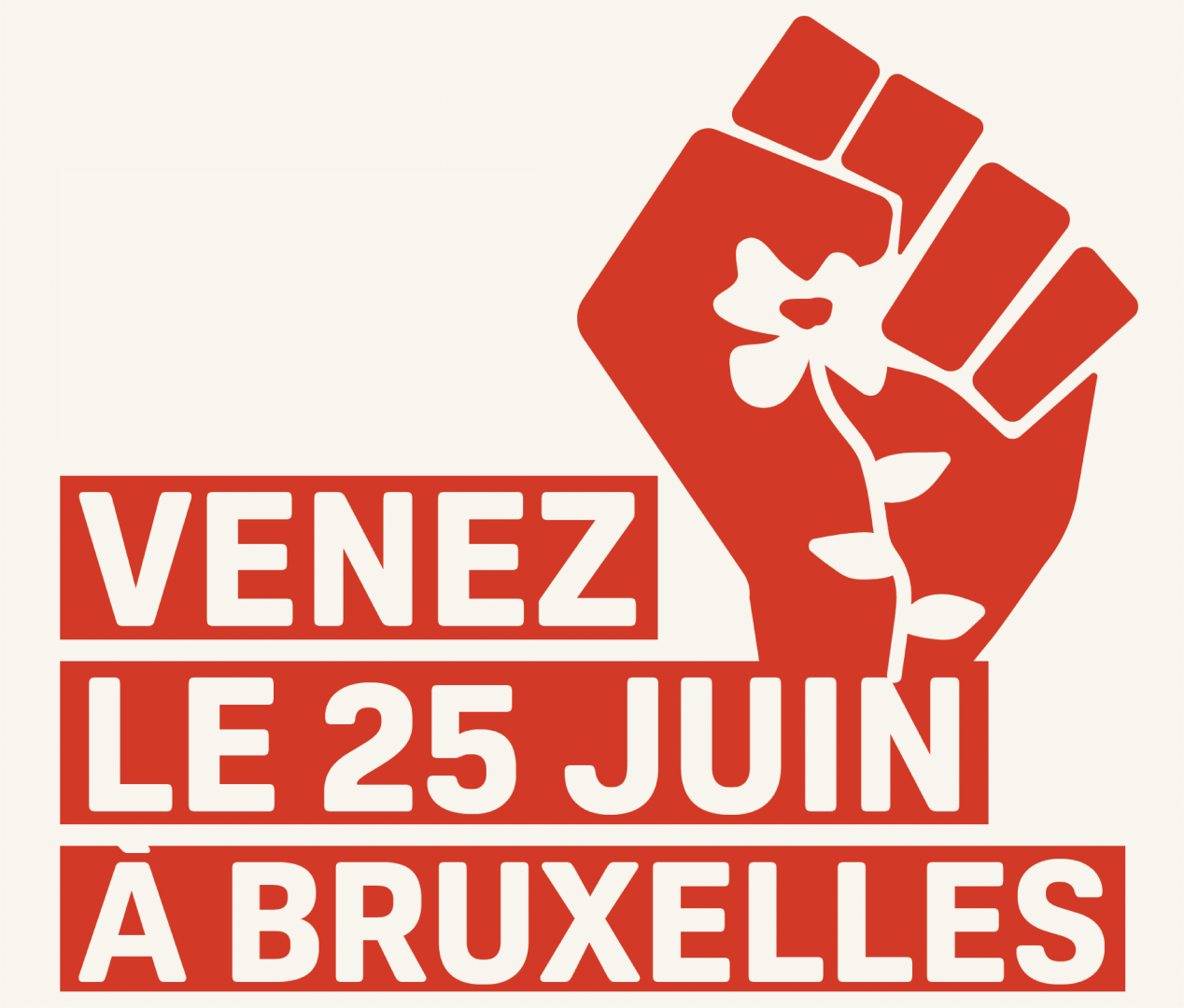 Les syndicats invitent explicitement la large société civile à se rassembler également à Bruxelles : le 25 juin, mobilisons-nous massivement à Bruxelles pour faire changer les choses !
